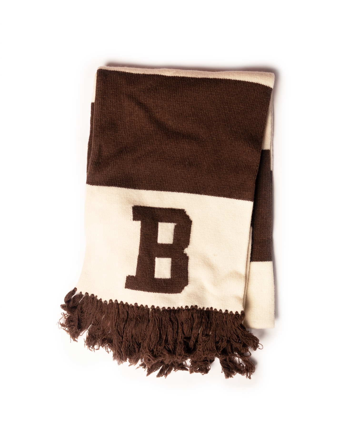 Brown Wool Rugby Stripe Scarf