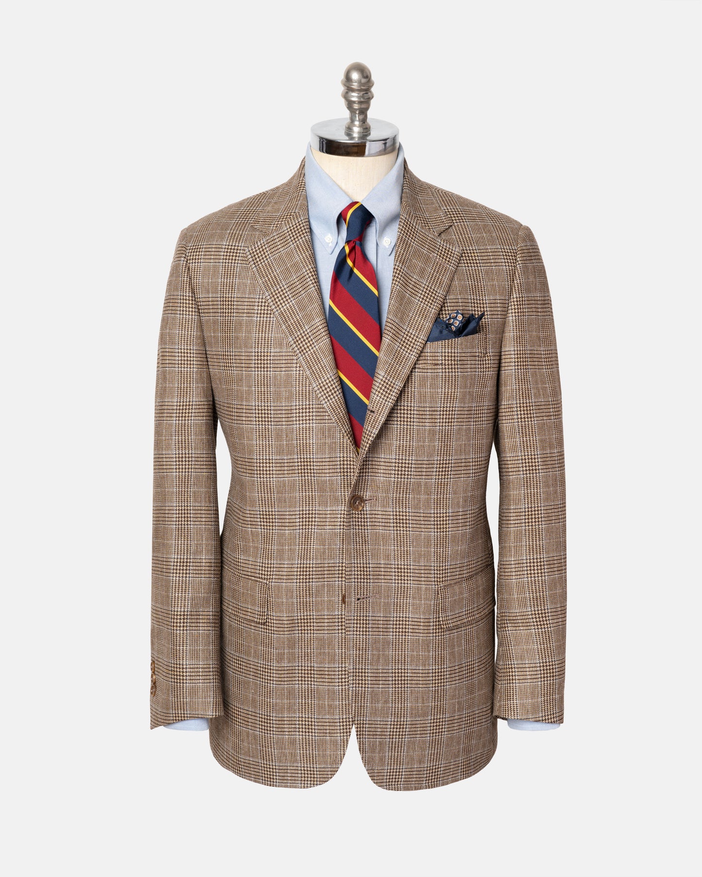 Made-in-Canada Light Brown & Blue Glen Plaid Silk/Wool Sport Coat